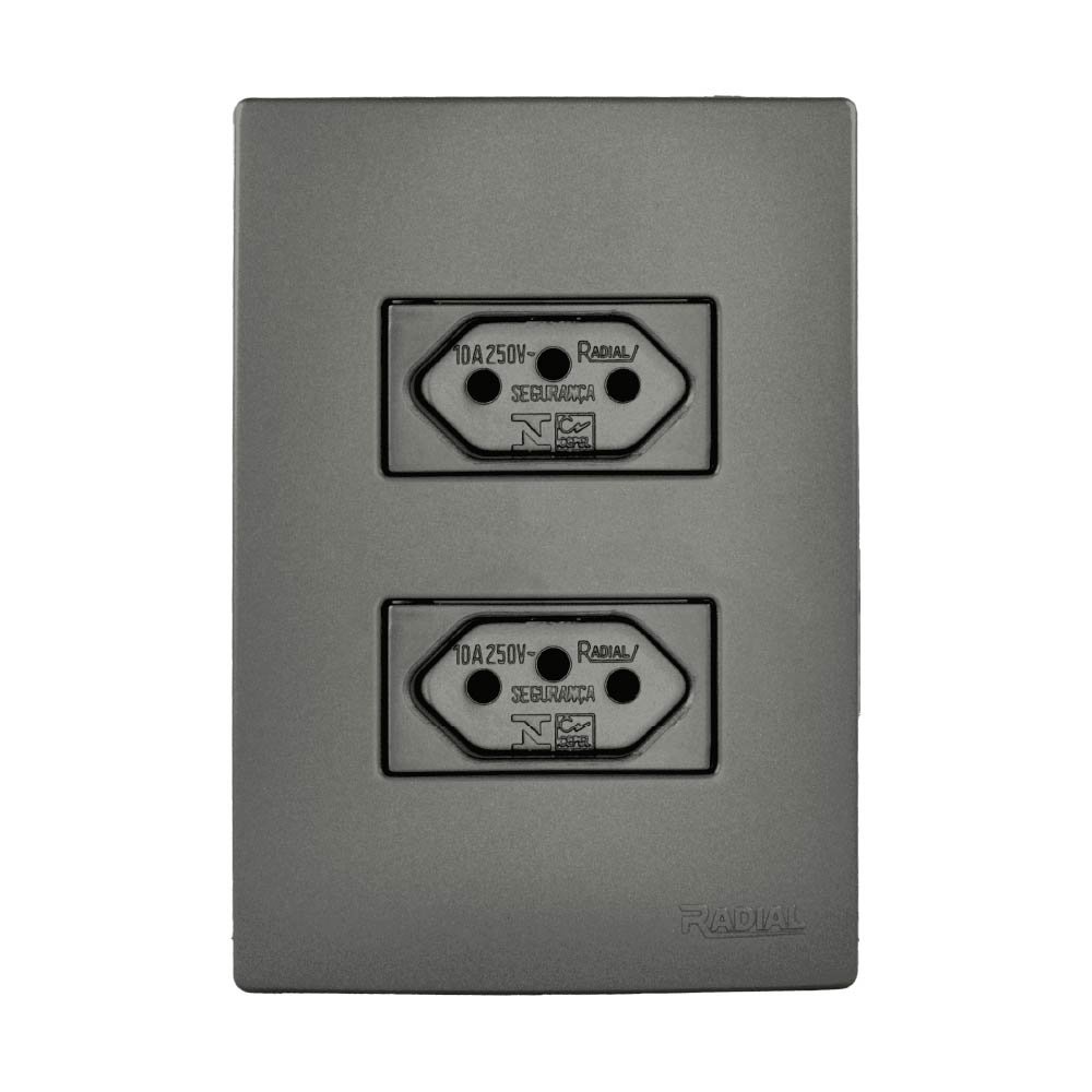 2 Tomadas Distanciadas 10A Ouro Grafite - Radial