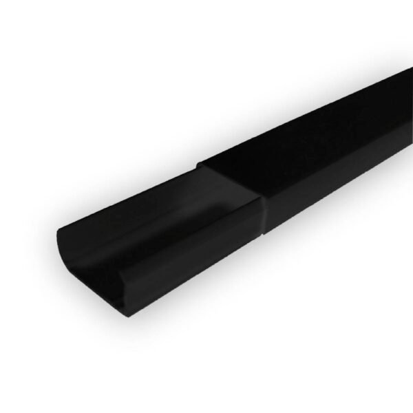 É um perfil plástico para organizar e proteger fios e cabos, fixado em paredes ou móveis com um adesivo dupla face forte, oferecendo uma solução prática, discreta e segura para instalações elétricas aparentes, sem a necessidade de furos.