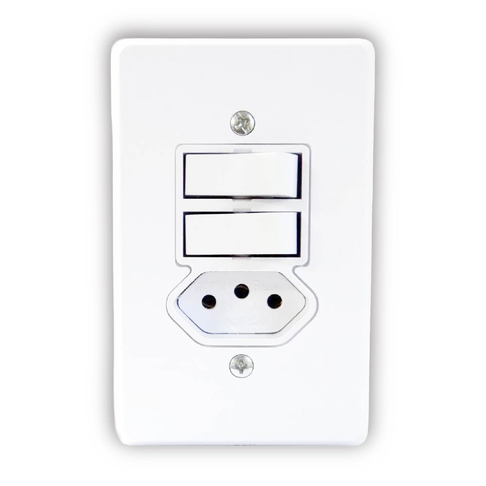 Interruptor 2 Teclas Simples E 1 Tomada C/ Placa 20A - Radial
