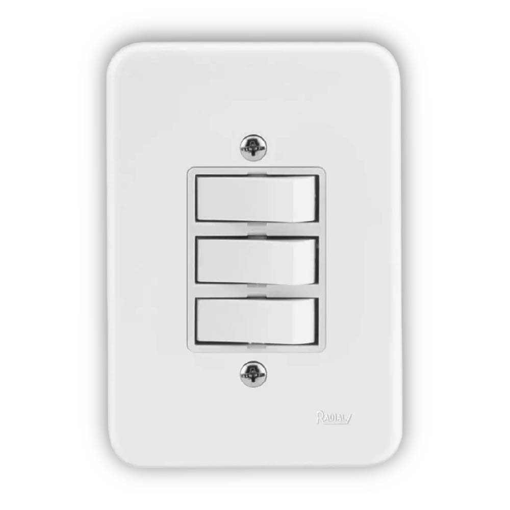 Interruptor 3 Teclas Com Placa (Pollar Branca) – Radial da marca RADIAL, ideal para aplicações em iluminação residencial e comercial, oferecendo eficiência luminosa, economia de energia e excelente durabilidade.